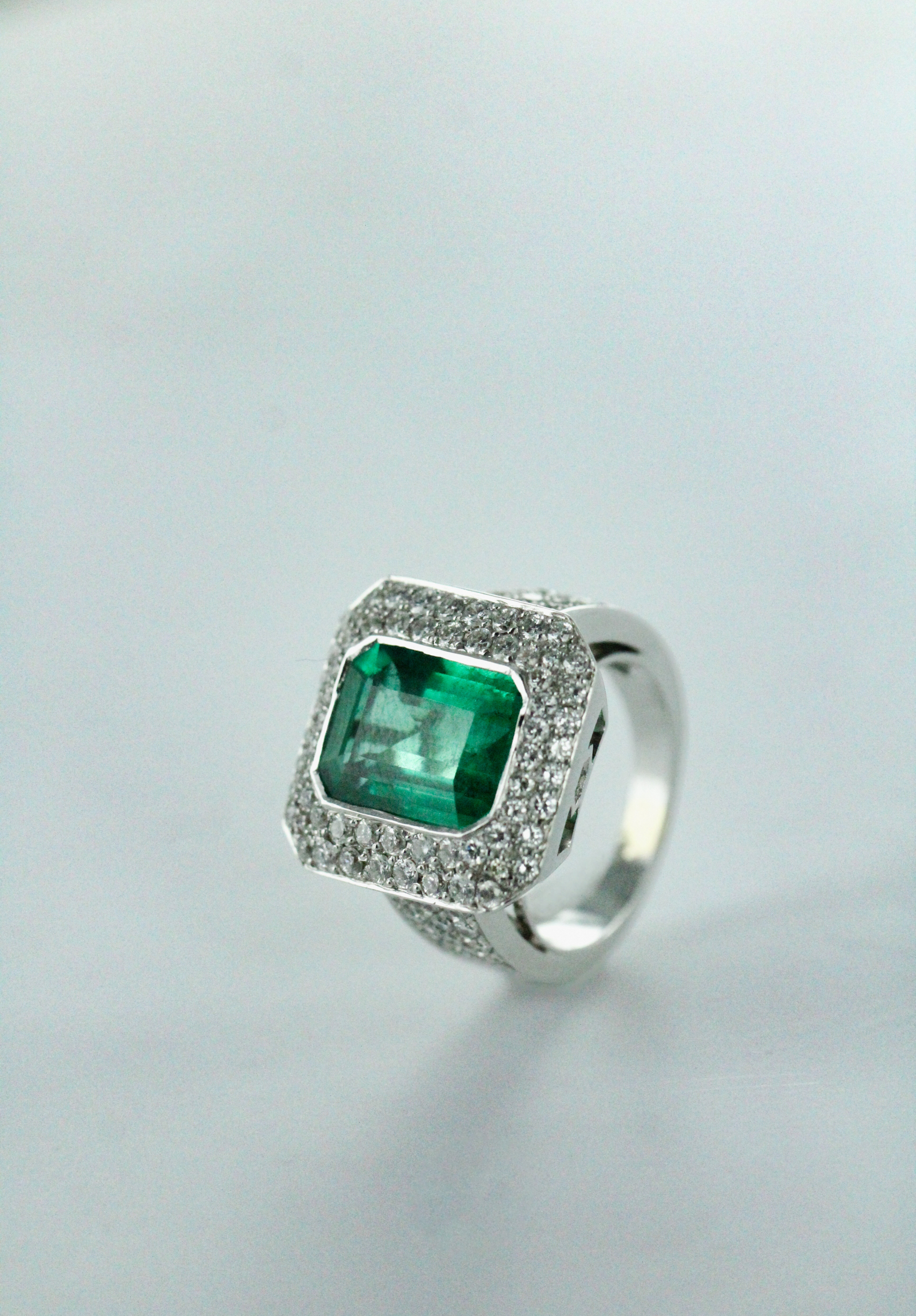 Bague or jaune, émeraude de Colombie environ 4.50cts