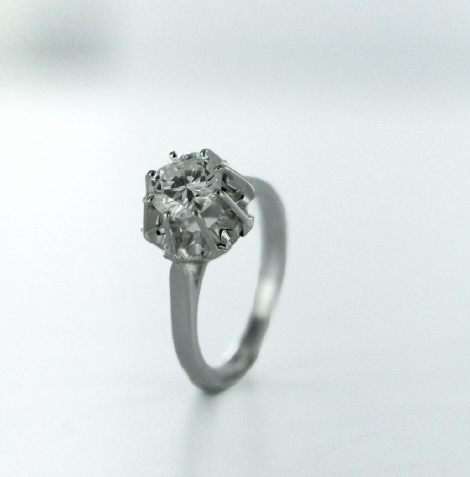 Solitaire diamant, 1/2 taille, or blanc 18K